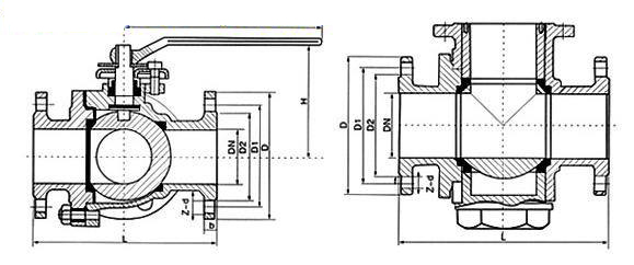 1、三通球閥在結(jié)構(gòu)上采用一體化結(jié)構(gòu),4面閥座的密封型式,法蘭聯(lián)接少,可靠性高,設(shè)計(jì)實(shí)現(xiàn)了輕量化