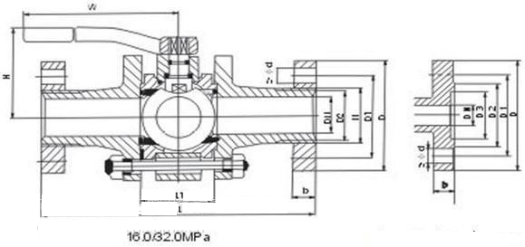 Q41N鍛鋼法蘭球閥主要外形尺寸