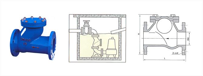 滑道滾球式止回閥,采用橡膠包皮滾球為閥瓣在介質的作用下可在閥體內的整體式滑道上作上下滾動從而打開或關閉閥門密封性能好消聲式關閉不產生水錘。閥體采用全水流通道流量大.阻力小.水頭損失比旋啟式小50%,水平或垂直安裝均可,可用于冷水、熱水、工業及生活污水管網更適合潛水排污泵介質溫度為0-80℃。
